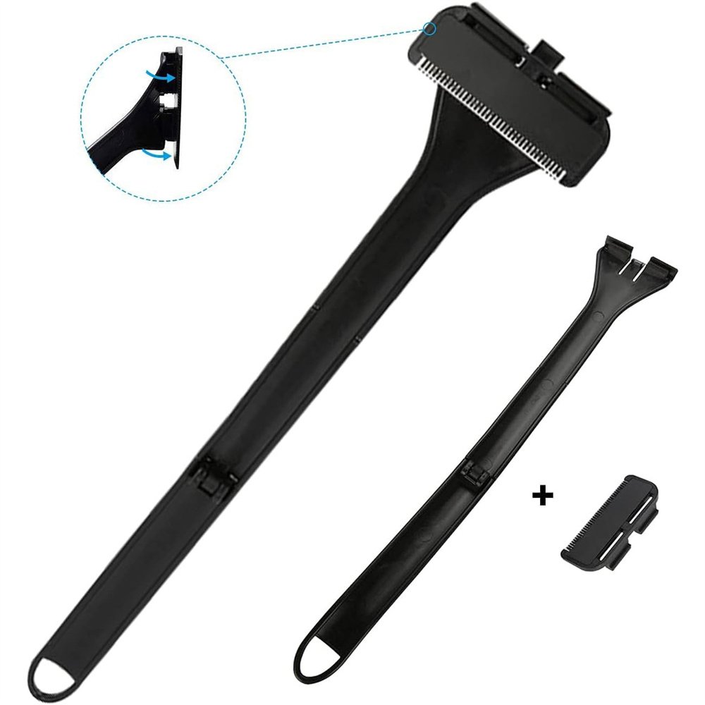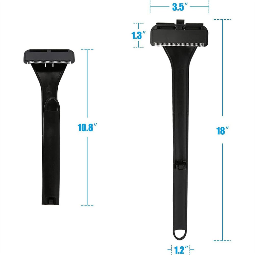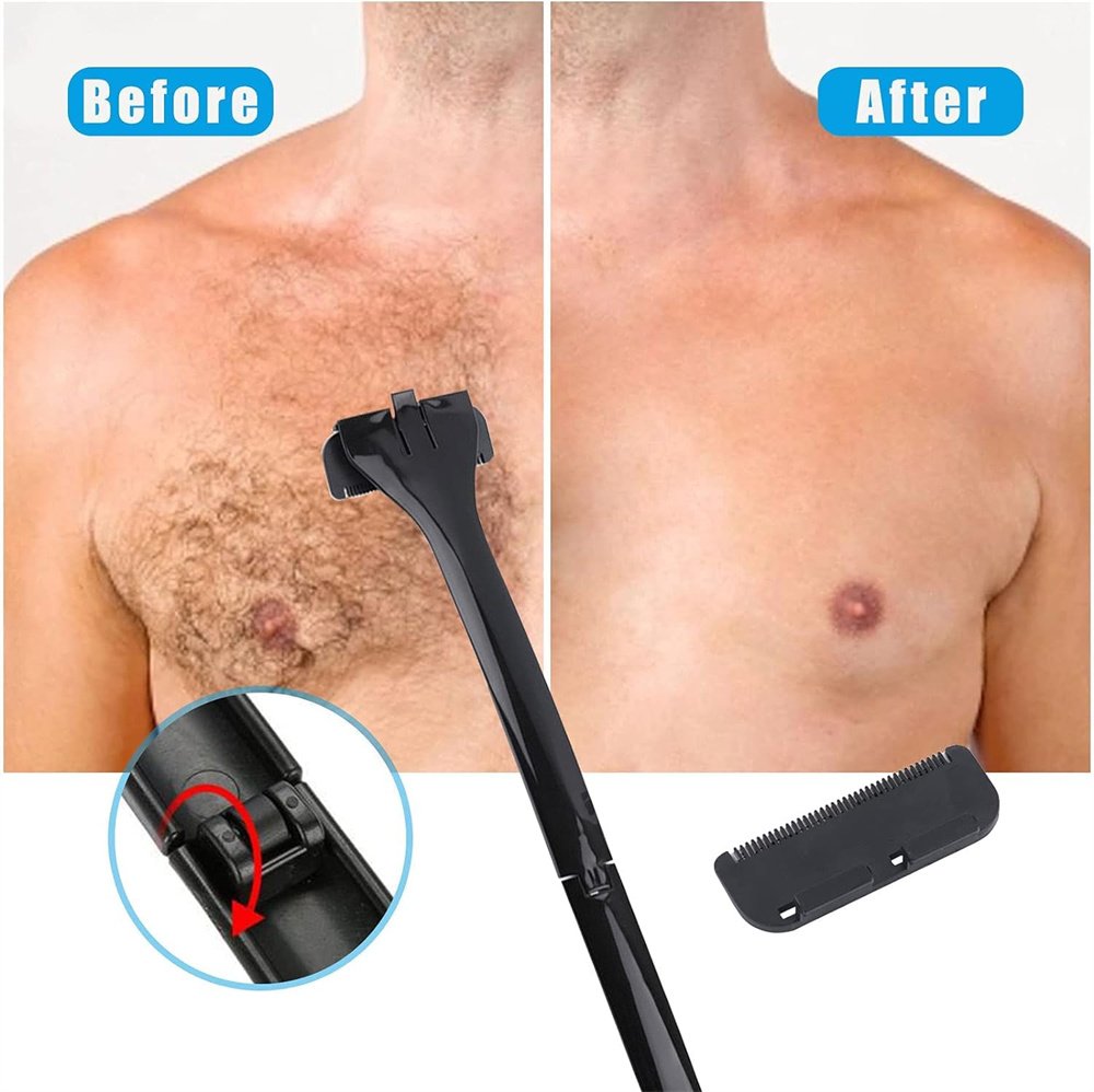 1.FAST AND SAFE SHAVER The back razor is designed to fit the human back. The 3.5 inch wide blade can trim body hair perfectly, quickly, pain-free, effectively and convincingly from all angles and even against the direction of hair growth