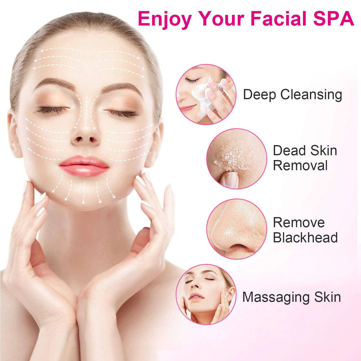 *[360 Degree Rotation System]--360 degrees clean clogged pore without dead angle; remove dead skin cells and other skin dirt; rotatory system promote blood circulation in the face and collagen production; tighten the skin.