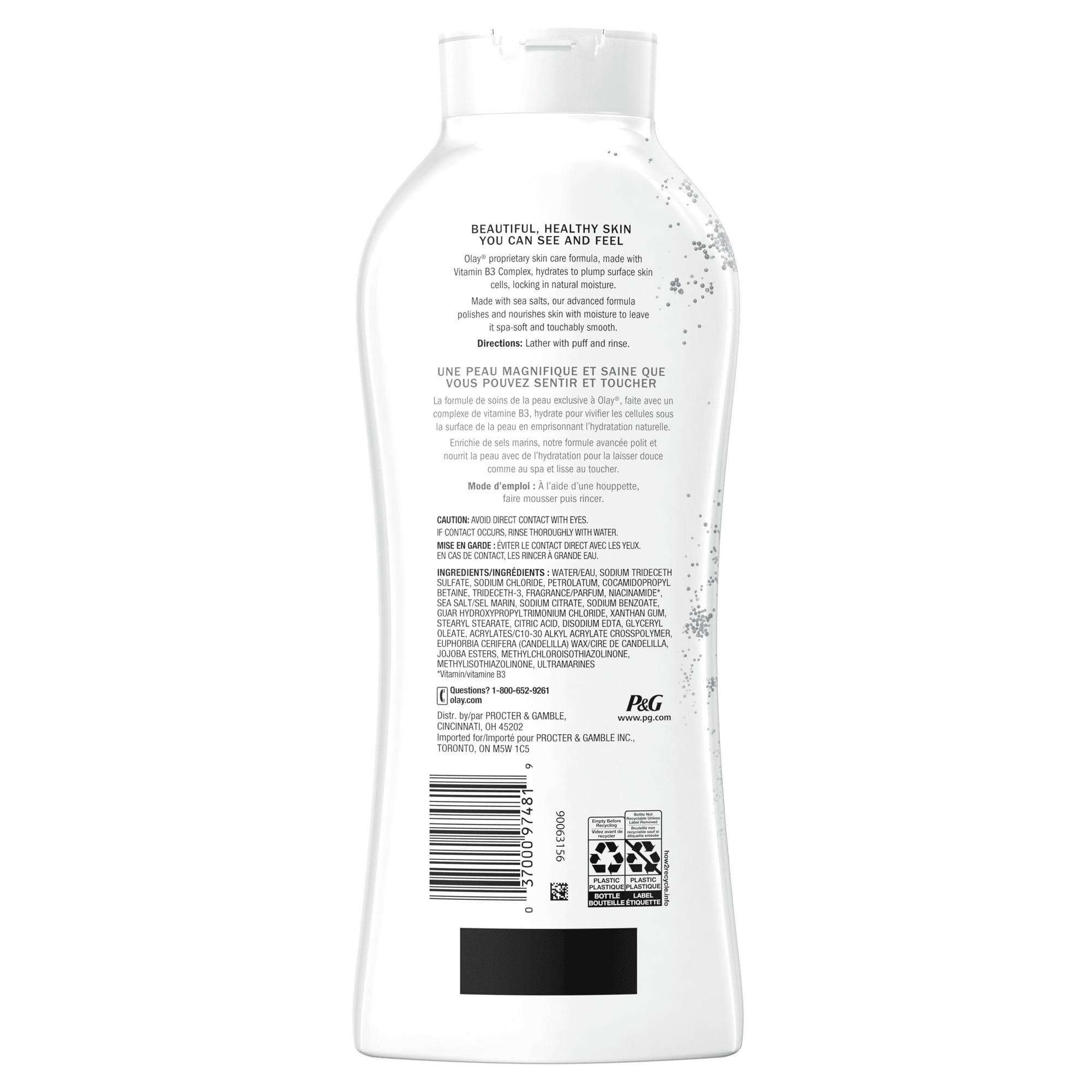 Beautiful, healthy skin you can see and feel - reveal beautiful, healthy-looking skin with olay exfoliating body wash with sea salt. Now formulated with olay’s vitamin b3 complex, it hydrates to plump surface skin cells, locking in natural moisture. Our advanced formula, made with sea salts, polishes and pampers skin to leave it spa-soft and touchable smooth. All female skin types